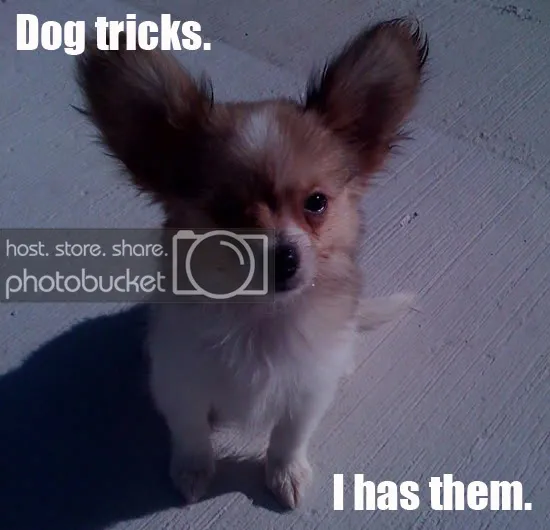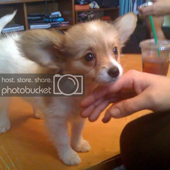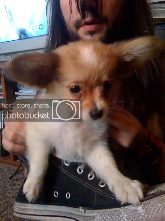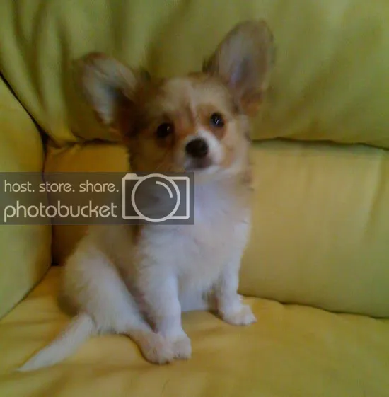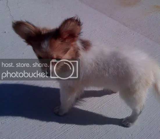 I just bought my mom this puppy the other day. It's a Papillon (french for Butterfly) and it's ears are freakishly large hence the butterfly name. It's actually really well behaved for a puppy. My mom thought it was a cat when she first saw it and the first night she spent with she kept telling me it sounded like a bird because of it's barking. Now image if "El Skeleto" from Nacho Libre was a woman. That's what her voice sounds like.