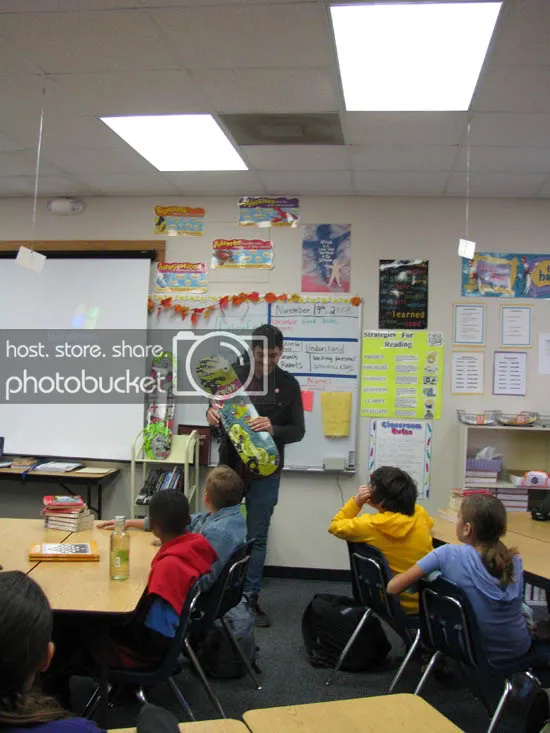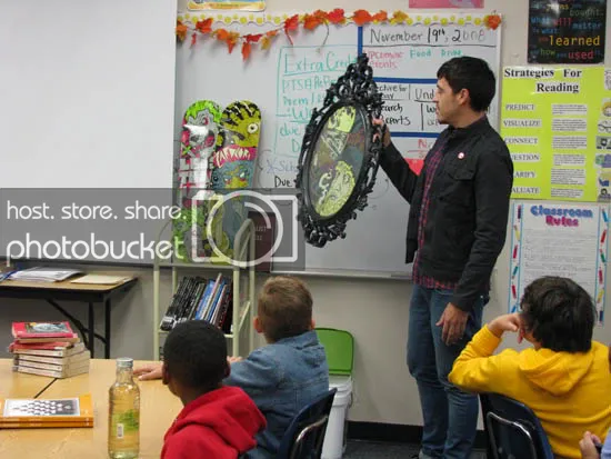I would of been SUPER pumped if I was their age and some bad ass dude came in their with skate decks and paintings of guts talking about how he makes his money this way and plays in punk bands. I'm just saying.