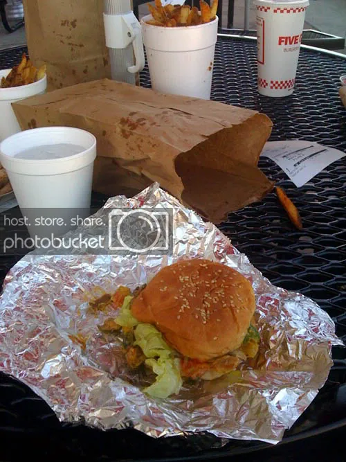 ...Um, I mean "eating at Five Guys". It's some burger joint that Joey (Team Doom), Skull With Hair and I ate at today. I don't eat red meat but they did have a veggie sandwich which was a burger with no meat. It was still really good. I had something similar at IN-N-OUT Burger in L.A. and it ruled. I did boot camp and Yoga back to back at my gym yesterday and everything I worked hard for was wiped out with this lunch. Anyways, nothing cool happened I just want to show you these pics because I'm a fat kid at heart and love food.